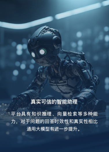 平臺具有知識推理、向量檢索等多種能力,對于問題的回答時(shí)效性和真實(shí)性相比通用大模型有進(jìn)一步提升。