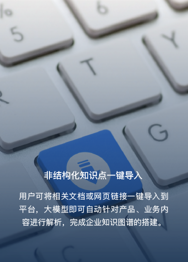 用戶可將相關(guān)文檔或網(wǎng)頁鏈接一鍵導(dǎo)入到平臺,大模型即可自動針對產(chǎn)品、業(yè)務(wù)內(nèi)容進(jìn)行解析,完成企業(yè)知識圖譜的搭建。