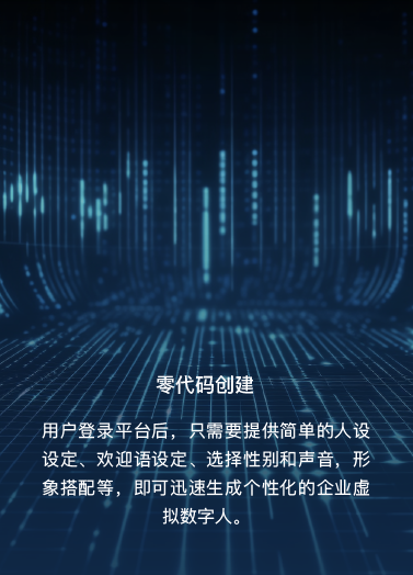用戶登錄平臺后,只需要提供簡單的人設(shè)設(shè)定、歡迎語設(shè)定、選擇性別和聲音,形象搭配等,即可迅速生成個(gè)性化的企業(yè)虛擬數(shù)字人。